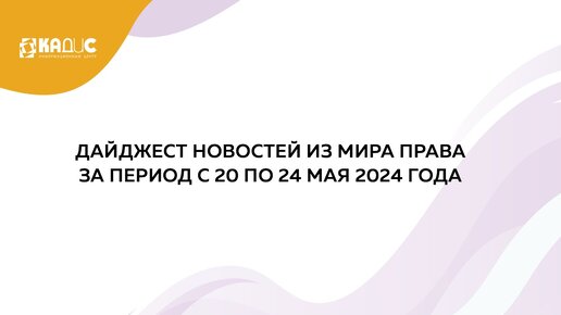 Что нового произошло в законодательстве с 20 по 24 мая 2024 года?