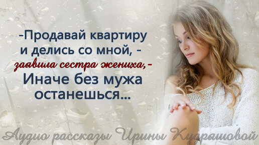 - Продавай квартиру и делись со мной, - заявила сестра жениха, - Иначе без мужа останешься!