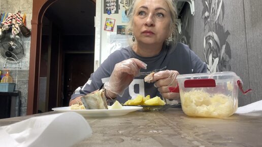 Мукбанг!Обед! Молодая, картошка со скумбрией и луком 🧅