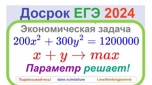 Параметр решает экономическую задачу, Досрочный ЕГЭ 2024