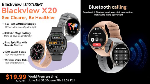 Обзор часов Blackview X20 - Амолед, 480*480, 2 ремня в комплекте