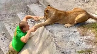Олег Зубков приучает львят к воде! Львы - не тигры! Их плавать так просто не заманишь! Золотой прайд