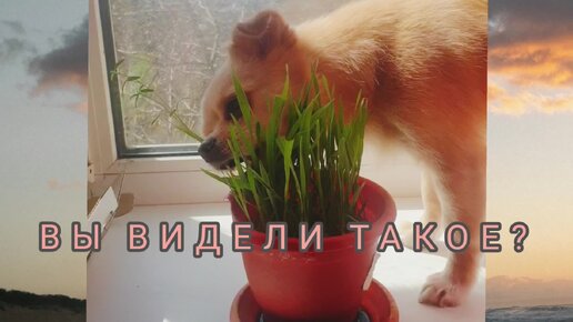 Кошковидная собака с повадками кошки. Моника ест траву.