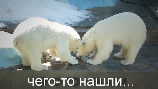 В вольер белых медвежат неожиданно свалился большой ком снега с сюрпризом.