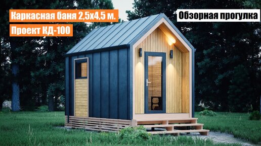 Каркасная баня 2,5х4,5 м. в стиле Барн. Проект каркасной бани КД-100