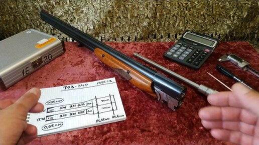 ТОЗ-34Р замер каналов стволов и дульных сужений нутромером.