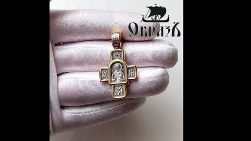 Крест с образом Господь Вседержитель и икона Божией Матери Семистрельная, серебро 925 проба с золочением (арт. 17.010)