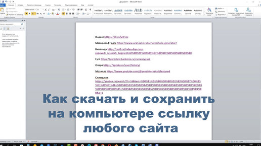 Как скачать и сохранить на компьютере ссылку любого сайта в документе Word 2013
