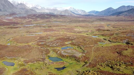 На границе среднего и нижнего течения р. Бол. Кара. Вид с коптера. Хребет Оченырд, Полярный Урал