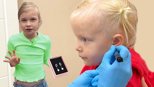 Нике прокололи уши. София подарила сестре серьги. Софунья Шалунья