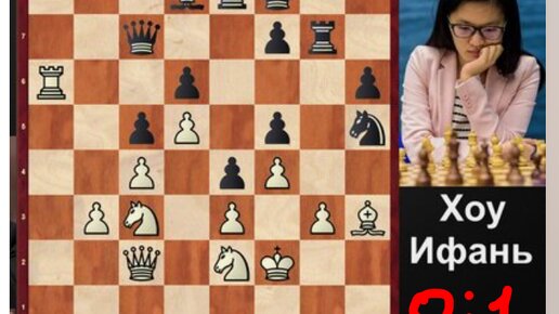 "Борис, ты не прав!" Китайская гениальная шахматистка Хоу Ифань жертвует ферзя ходом 16...♘xc3 Боре Идлеру и ставит мат (Ла Галета, 2017)