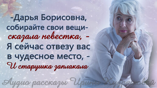 - Собирайте вещи, Дарья Борисовна, - заглянула в комнату сноха, - Я вас отвезу в чудесное место... Старушка же тихо заплакала...