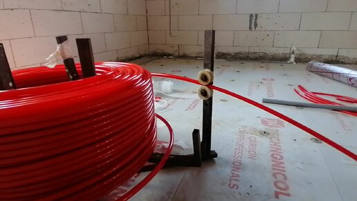 Монтаж водяного теплого пола. Разматыватель для PEX трубы.