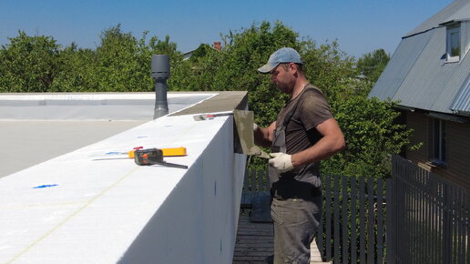 Как утепляются парапеты дома с плоской кровлей, как формируется уклон под установку парапетного отлива, базовый армирующий слой