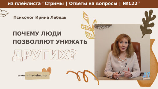 Почему люди позволяют себе унижать других? - из плейлиста Стримы | Ответы на вопросы № 122 - психолог Ирина Лебедь