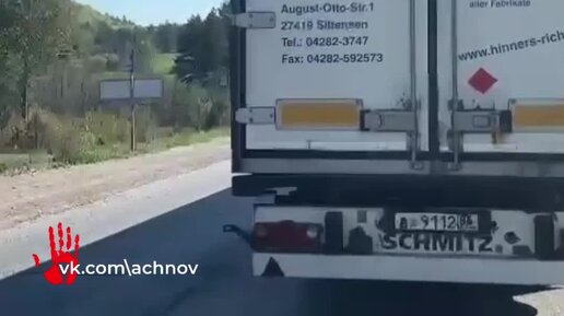 Колесо разорвалось у грузовика на трассе