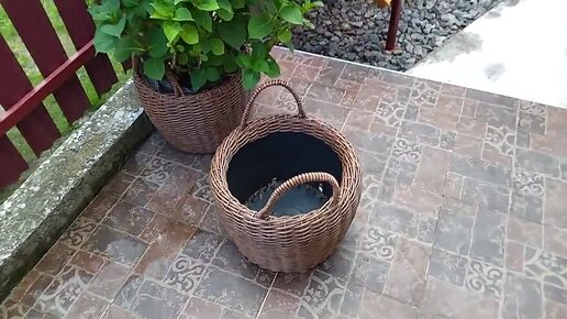 Сплела 20-литровое кашпо с ручками для гортензий из полиротанга. Как выглядят кашпо после 2 лет использования