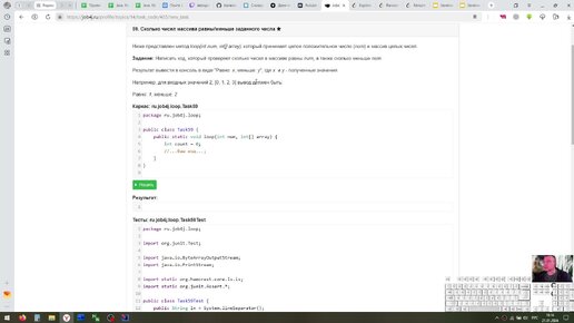 Java. Циклы. Сколько чисел массива равны - меньше заданного числа