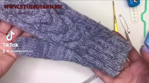обзор вязаные варежки с косами