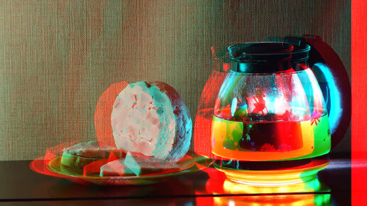 3D stereo red-cyan Ветчина пикантная из курицы с чесноком