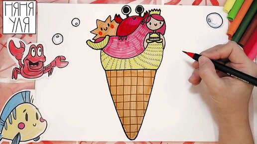 Как нарисовать МОРОЖЕНОЕ РУСАЛОЧКУ легко и просто для детей | 23 выпуск | Добрая рассылка няни Ули