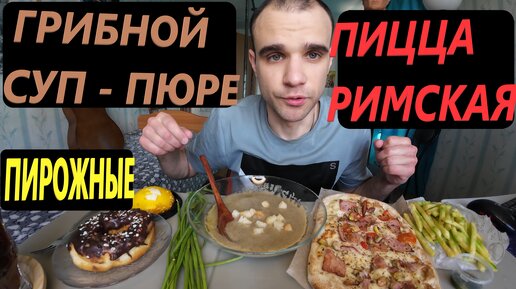 МУКБАНГ ПИЦЦА РИМСКАЯ С БЕКОНОМ / PIZZA / ГРИБНОЙ СУП - ПЮРЕ / КАРТОШКА/ EATING Mukbang / ASMR АСМР