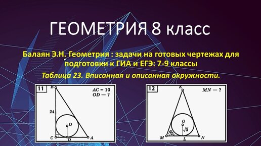 Геометрия 8. Вписанная окружность в задачах № 11 и 12 на готовых чертежах.