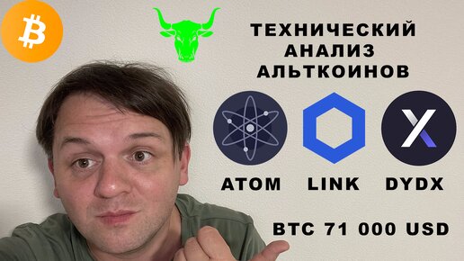 🟢 БИТКОИН 71 000. УЖЕ ВЗЛЕТАЕМ?! ТЕХНИЧЕСКИЙ АНАЛИЗ #LINK #DYDX #ATOM #cosmos