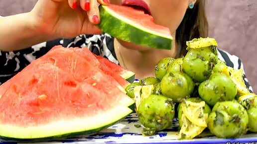 АСМР Сочный арбуз и лимонный салат Альса