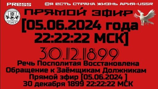 Прямой эфир 30 декабря1899[05.06.2024] Речь Посполитая ВосстановленаОбращение к Заёмщикам Должникам