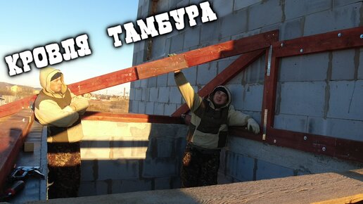 Как крепить ДОСКУ к ГАЗОБЕТОНУ! Вальмовая кровля тамбура. 2ч. Мои первые стропила и их крепление!
