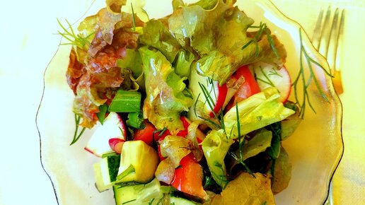 Дачный салат. Свежий аромат зелени радует своим вкусом.