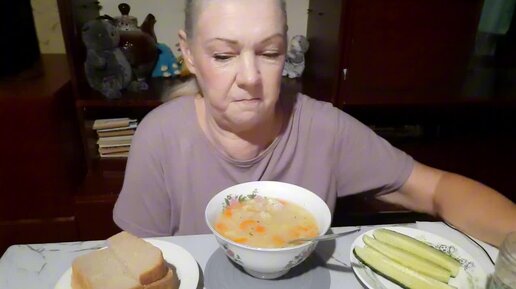 Мукбанг суп и огурчик с грядки