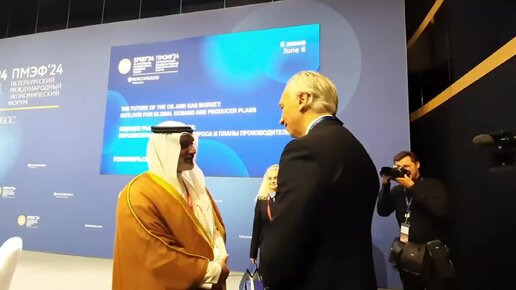 Генсекретарь ОПЕК Хайсам аль-Гайс и глава "Газпром нефти" Александр Дюков перед началом сессии на ПМЭФ