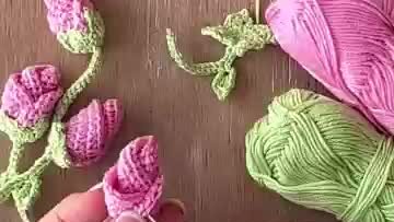 Простой способ связать бутон розочки. Вяжем круг по любой схеме. Чашелистник из другой пряжи. Сворачиваем кружок в бутон и пришиваем чашелистник.