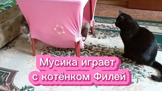 Котёнок Филя и Мусика играют.