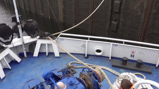 Теплоход поднимается в шлюзе № 10