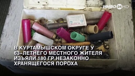 В Куртамышском округе у 63-летнего местного жителя изъяли 180 гр незаконно хранящегося пороха.
