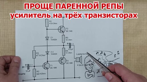 Один из самых простых усилителей звука на трёх транзисторах