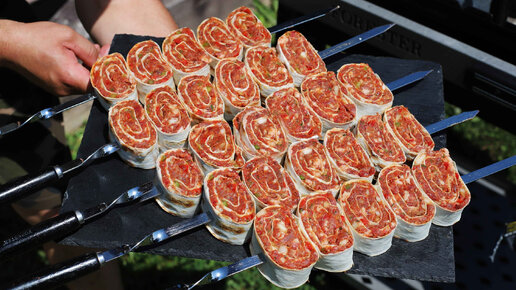 Пробую новый шашлык 2024. Мясо с овощами в лаваше на мангале.