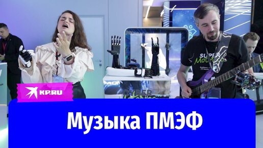 Человек с протезом руки играет на гитаре на ПМЭФ-2024