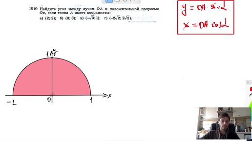 №1019. Найдите угол между лучом ОА и положительной полуосью Ох, если точка А имеет координаты