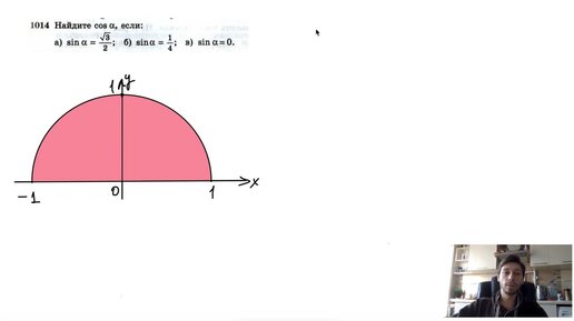 №1014. Найдите cos α, если- а) sin α =√3-2; б) sin α = ¼ в) sin α=0.