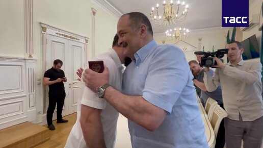 Меликов вручил бойцу Исламу Махачеву, защитившему титул чемпиона UFC в легком весе