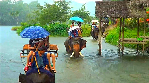 Таиланд Паттайя . Деревня слонов на реке Квай. Слоны мои друзья . Катаемся на слонах в дождь. Классные выступления слонов.