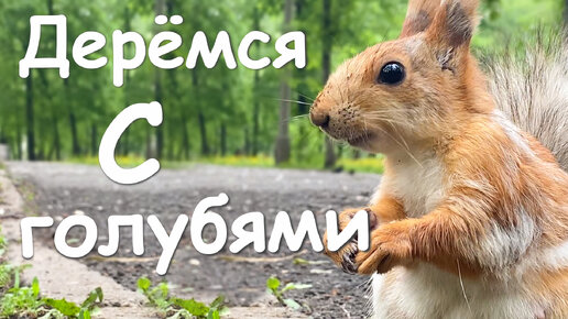 Очень наглые голуби не дают белкам поесть.
