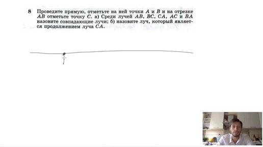 №8. Проведите прямую, отметьте на ней точки A и B и на отрезке АВ отметьте точку С