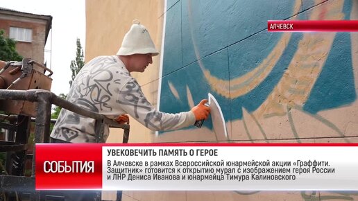 ТК "Родной". В Алчевске готовится к открытию мурал с изображением героя России и ЛНР Дениса Иванова и юнармейца Тимура Калиновского
