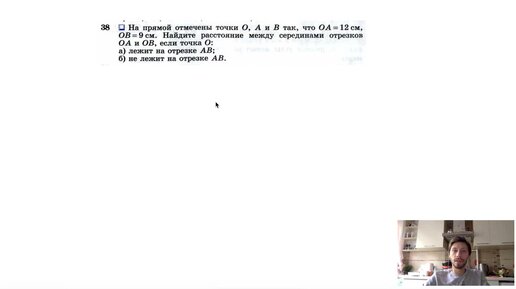 №38. На прямой отмечены точки О, А и B так, что ОА= 12 см, ОB = 9 см. Найдите расстояние
