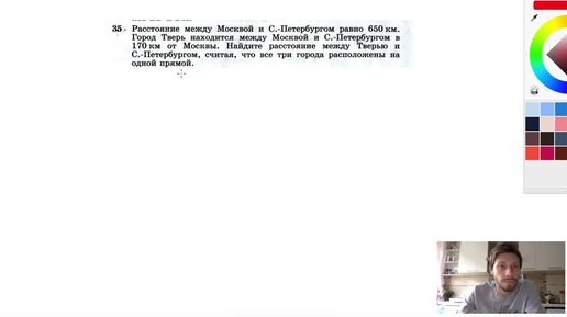 №35. Расстояние между Москвой и С.-Петербургом равно 650 км. Город Тверь находится